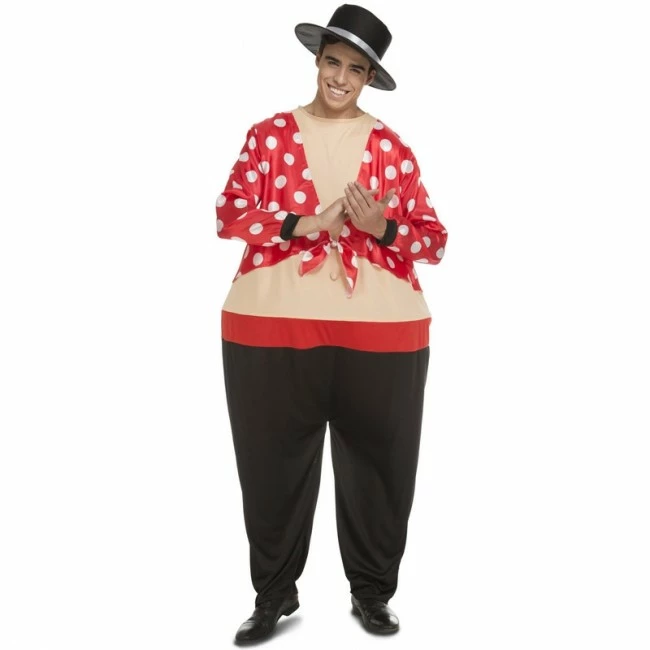 Aparenta ser un original Bailaor Flamenco gracias al nuevo disfraz para hombre. Un gran idea disfraz gordinflón adulto de cara a vuestra próxima fiesta de Carnaval o cumpleaños que incluye el mono con un aro y el sombrero y disponible en talla única. Los precios más económicos para disfrazar a hombres y mujeres de todo tipo. Este disfraz gracioso dará la sensación de estar bien entradito en carnes gracias al efecto que proporciona el aro dentro del mono del disfraz de gordo en una despedida de soltero o de soltera.