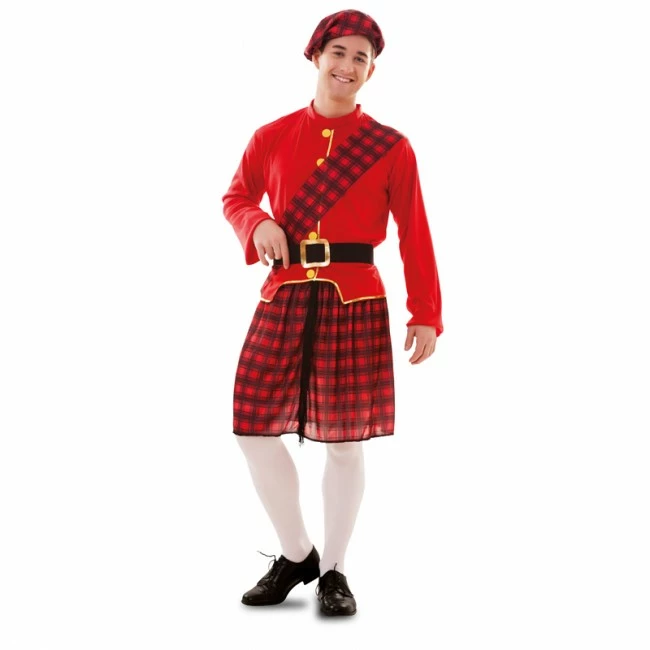 Este nueva versión del clásico disfraz de Escocés para hombre siempre será una excelente idea. Este nuevo disfraz está disponible en talla unica y se compone de: Blusa con bufanda, cinturón, falda y gorra. El modelo perfecto para espectáculos disfrazados junto a tus amigos.
