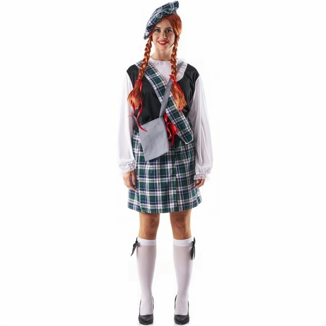 Vístete como una Escocesa celta gracias a este nuevo modelo para mujer. Sin duda una fantástica opción tener a mano, este disfraz Escocesa femenino que incluye: Camisa, falda, bolso, gorro y una tira de polipiel y disponible en talla única. Los mejores precios de Internet en disfraces para señoras.