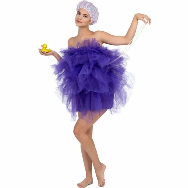 Todo a punto para convertirte en Esponja de baño de forma superoriginal y llamativa gracias a este nuevo disfraz para mujer. La idea de disfrazarte como esponja de ducha suena genial, con este nuevo traje de Carnaval adulto femenino seguro que acertarás. Contiene vestido y está disponible en talla única para acoplarnos a todas las medidas posibles. Seguro que la idea de este nuevo disfraz de esponja de malla morada de mujer os permitirá lucir alucinantes en un desfile de Carnaval, una fiesta de disfraces con amigas, o una despedida de soltera disfrazando a la novia convirtiéndola en Esponja de baño imitando su look de forma realista. Compra este original traje de Esponja de baño mujer cómodamente desde casa en nuestra tienda online.