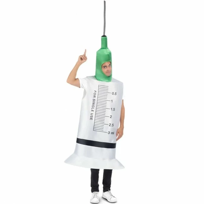 Transfórmate en un llamativo Jeringuilla de forma rápida usando este nuevo disfraz original de para hombres. No dejes pasar la oportunidad de disfrazarte como una Jeringa con este traje de Carnaval masculino talla adulto que contiene traje en forma de jeringuilla y está disponible en talla única. Este nuevo disfraz vacuna coronavirus de hombre es ideal para lucirlo en tu próxima fiesta de disfraces o desfile y forma parte de nuestro extenso catálogo de disfraces de Carnaval para hombre.