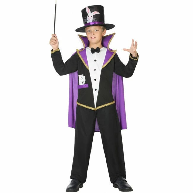 Conoce el novedoso disfraz de Mago con chistera en tallaje para niños. Un traje infantil de Carnaval perfecto para multitud de eventos en el colegio. El disfraz para niño de Mago incorpora: Chaqueta con camisa, capa, pantalón y chistera. Compra cómodamente los disfraces para tus hijos desde tu casa y recibe al día siguiente.