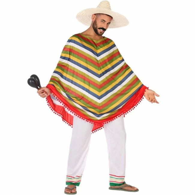 Simula ser Mejicano Multicolor utilizando este nuevo disfraz diseñado para hombre. Un auténtico disfraz masculino para multitud de eventos disfrazados que incluye: Poncho y pantalón y disponible en 2 tallas. Alucina con nuestros precios en disfraces para hombres.