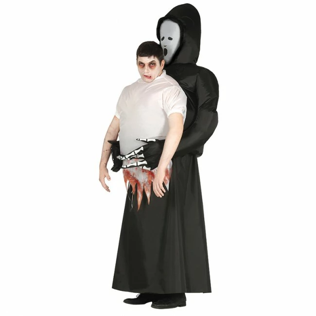 ¿Buscas ideas para disfrazarte de forma original y terrorífica este Halloween 2023? Te invitamos a conocer los disfraces Ride On, también conocidos como la moda disfraces Carry Me. Este nuevo disfraz de Muerte Halloween a hombros barato es un claro ejemplo de lo divertidos que son estos disfraces que producen la ilusión de ir montado encima o cogido por lo que muchos consideran el personaje de la Muerte en una fiesta Halloween en este caso. Este disfraz de Muerte Halloween llevando a brazos a un adulto que se lo pone destacará sobre el resto de invitados en tu próxima fiesta, Carnaval o despedida de soltero.