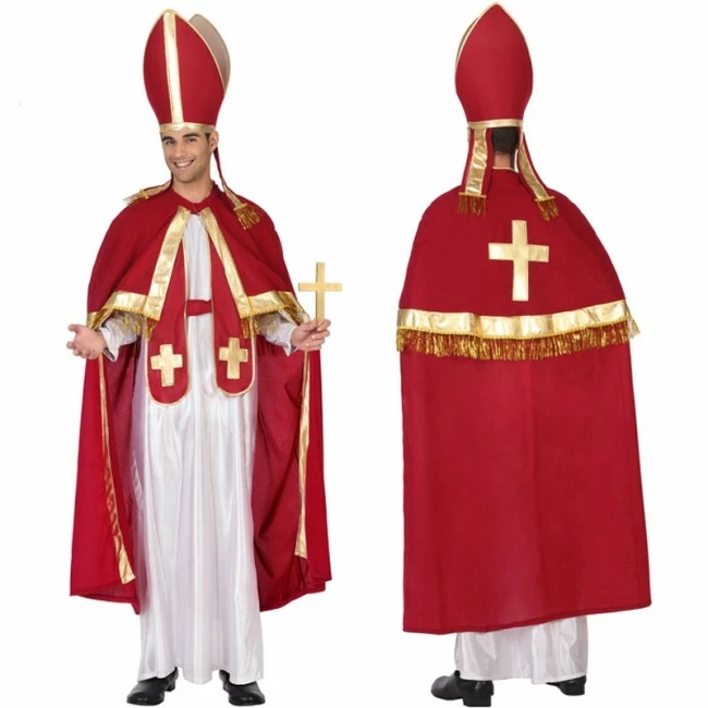 Métete en la piel de un hombre de Iglesia con este auténtico disfraz de obispo. Incluye : Túnica, capa y gorro. Perfecto para carnaval o fiestas de disfraces con temática religiosa.