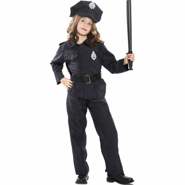 ¿Hay algún ladrón que detener? Disfraz de policía infantil muy realista compuesto por camisa, pantalón, cinturón y gorra. Ideal para carnaval y fiestas de disfraces con temática de oficios. Con este completo disfraz de policía vuestro hijo estará listo para poner el orden entre los niños de su clase…