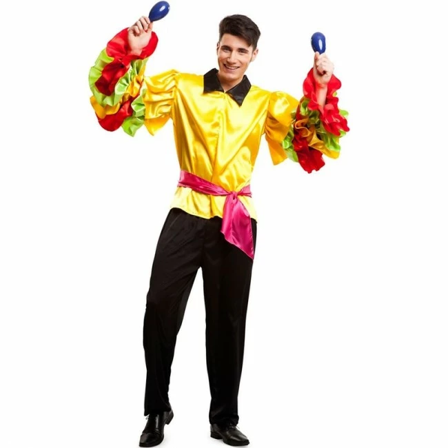 La nueva versión que presentamos del disfraz para hombre Bailarín Rumbero de origen brasileño está compuesto por camisa, pantalones y cinturón. Este colorido y vistoso disfraz adulto chico está disponible en talla única. Un disfraz masculino con el que sin duda no fallarás en Carnaval y un desfile de disfraces.