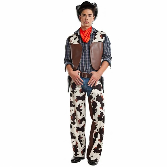 Todo el mundo querrá contar con tu presencia en su fiesta al verte llegar con este alucinante disfraz de hombre Vaquero del salvaje Oeste. El disfraz de cowboy incluye el chaleco, los zahones y un pañuelo a juego. Pásalo en grande en cualquier Carnaval, fiesta temática e incluso la noche de Halloween.